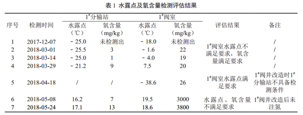 (1)根據水露點(diǎn)及氧含量檢測分析結果,管道水露點(diǎn)不滿(mǎn)足規范要求,且1#閥井改造后管道內氧含量不滿(mǎn)足要求。