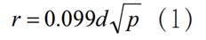 式中: r為區域半徑, 單位為米, m;d為管道的公稱(chēng)直徑, 單位為毫米, mm;p為管段的最大允許操作壓力(MAOP) ,單位為兆帕, MPa;0.099是天然氣的因子。