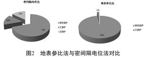 以新疆某油田埋地鋼質(zhì)管道為例, 該油田長(cháng)輸管道經(jīng)過(guò)土壤環(huán)境有沙漠、 戈壁、 鹽堿灘、農田等, 土壤環(huán)境差別很大, 土壤電阻率變化非常劇烈, 這導致采用常規地表參比法進(jìn)行陰極保護管地電位測試中含有很大的IR降, 無(wú)法通過(guò)地表電位來(lái)評價(jià)管道是否處于陰極保護系統有效保護, 2010年采用密間隔電位法(CIPS) 對1600km管道進(jìn)行陰極保護有效性檢測發(fā)現有256km未達到-850mv, 有224km超過(guò)-1200mv, 而日常采用地表參比法測試僅發(fā)現32km未達到-850mv, 兩者相差很大, 兩種方法對比見(jiàn)圖2, 說(shuō)明地表參比法存在較大IR降從而影響判斷的準確性。