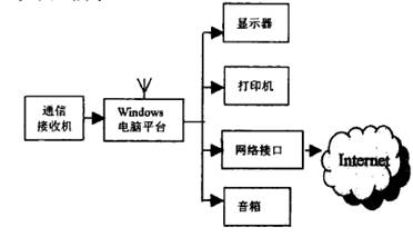 監控系統主要由通信接收機、Windows電腦平臺、顯示器、打印機、音箱和網(wǎng)絡(luò )接口等組成,如圖1所示。