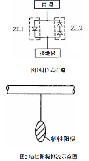 如果將排流接地體直接與管道連接, 由于接地電阻很小, 保護電流流失, 相當大面積的防腐層破壞陰極保護電流量增加, 以致破壞陰極保護正常運行, 所以需要增加排流節。 排流節排流又分為電容排流二極管排流和鉗位式排流, 通常采用鉗位式排流。