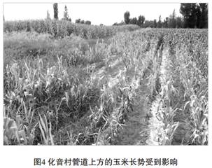 2-3℃的溫度并不能對作物的生長(cháng)造成什么影響。 但因為管道上方土層所高出的溫度使玉米生長(cháng)節律與非管道上方玉米不一致, 使得管道上方的玉米植株不能適應按照非管道上方制種玉米生長(cháng)節律制定的田間管理程序, 特別是灌溉時(shí)間的安排, 因此就出現了一系列我在《油氣管道上方農作物減產(chǎn)原因初探》 一文(見(jiàn)本刊2012年第1期) 中描述的問(wèn)題, 造成農作物的減產(chǎn)。