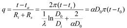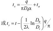 對于防止外表面結露的保冷層厚度計算是按給定的絕熱層表面溫度來(lái)計算絕熱層厚度。當管道內表面熱阻及金屬壁熱阻均可忽略時(shí),介質(zhì)溫度與金屬壁表面溫度一致。在忽略金屬保護層絕熱的情況下,表面溫度即為保冷絕熱層的外表面溫度。