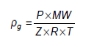 式中MW 為氣體的分子量;P 為管道內壓力,MPa;R 為理想氣體常數,8.314J•K•mol;T 為管道內溫度,K。