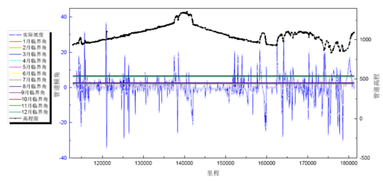 圖 13 府谷壓氣站-神池管段不同月份臨界角和內腐蝕敏感位置示意圖