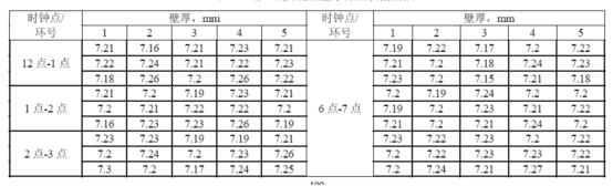 表3 開(kāi)挖點(diǎn)壁厚測量原始數據表