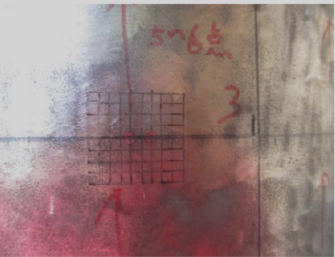 開(kāi)挖點(diǎn)選擇F1-0420 樁附近。下面第一幅圖是開(kāi)挖位置周邊環(huán)境及管段走勢,在一座山的爬坡段。開(kāi)挖長(cháng)度為1.5m,除去涂層且使用鋼絲輪清洗工具對管道表面進(jìn)行處理,超聲波測厚網(wǎng)格 5×127,每環(huán)之間相差10cm。相關(guān)人員實(shí)測記錄。在選定開(kāi)挖位置同時(shí),方對F1-0421、F1-0422 樁走勢進(jìn)行了確認,和高程數據相符。