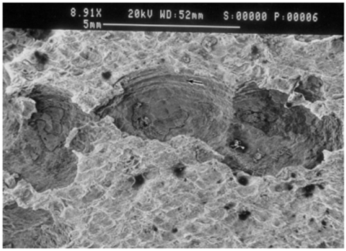 圖 4 能看到條紋的腐蝕凹坑微觀(guān)圖