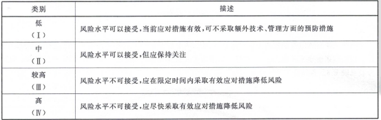 (3)風(fēng)險評價(jià)階段:提倡結合評價(jià)目標及數據完整度、經(jīng)濟投入等因素選擇適用的評價(jià)方法。風(fēng)險矩陣法將風(fēng)險分為低、中、較高和高4 個(gè)等級。見(jiàn)表 1。