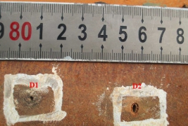 圖1. 試壓時(shí)泄漏噴水照片(左)和切管后漏點(diǎn)的尺寸