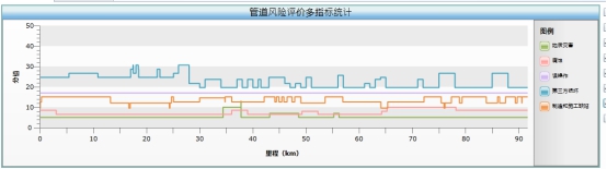 對已經(jīng)定義的管道,根據其屬性采用管道半定量風(fēng)險評價(jià)系統5個(gè)指標的模型進(jìn)行計算,得到每個(gè)管段的失效可能性值。得分越高失效可能性越大。