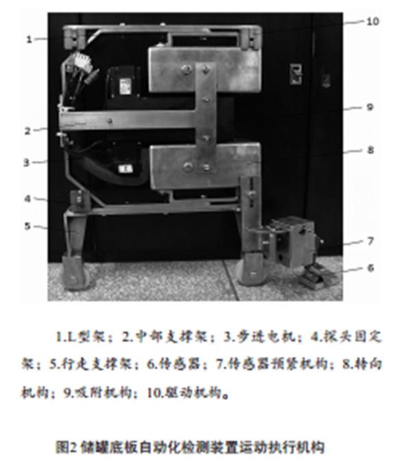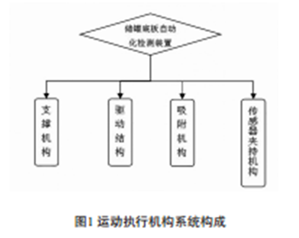因此,本文設計了一種儲罐檢測自動(dòng)化裝置,它主要由運動(dòng)執行機構和機電控制系統兩部分組成。該裝置能實(shí)現連續檢測、傳感器角度可自適應調整、行走速度可控制。從而達到提高檢測效率,降低檢測成本的目的。