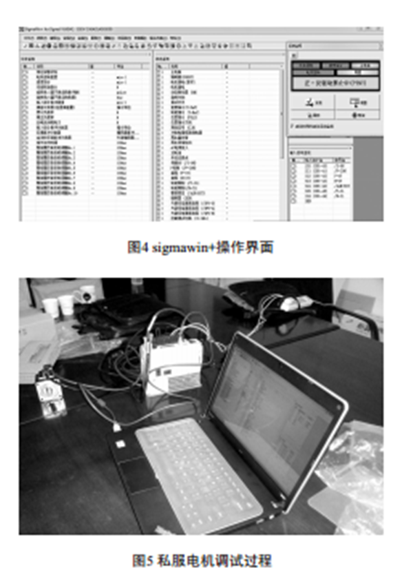在設計機電控制系統三個(gè)設定速度時(shí),需要對電機進(jìn)行在線(xiàn)調試。該伺服電機可以通過(guò)sigmawin+專(zhuān)業(yè)軟件對其進(jìn)行在線(xiàn)參數調節[8]。如圖4所示為sigmawin+操作界面。用數據線(xiàn)和電源線(xiàn)把電機與驅動(dòng)器相連接,再用USB數據線(xiàn)把電腦與驅動(dòng)器相連,然后啟動(dòng)sigmawin+軟件,就可以對伺服電機進(jìn)行在線(xiàn)調試。如圖5所示。