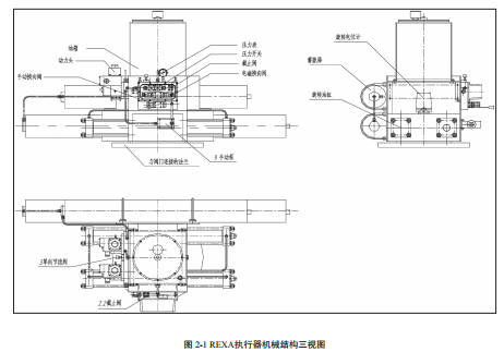 REXA執行器是一個(gè)由三套自成體系的控制系統組成的有機組合體。他們分別是由壓力開(kāi)關(guān)、步進(jìn)電機及其驅動(dòng)器、油泵、蓄能器,壓力表組成的充壓控制系統,由電磁閥、單向節流閥、蓄能器、旋轉油缸,球閥、旋轉電位計組成的開(kāi)關(guān)球閥控制系統(各組成單元部位機械制圖見(jiàn)圖2-1)以及手動(dòng)控制系統(充壓、開(kāi)關(guān))。
