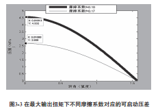 從 該 m a t l a b 仿 真 曲 線(xiàn) 可 知 摩 擦 系 數 介 于0.10~0.17之間時(shí)扭矩最大時(shí)的壓差應小于2.666MPa~4.532 MPa,取決于摩擦系數(摩擦系數是在不斷變化的)。