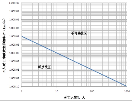 圖5 社會(huì )風(fēng)險可接受標準(F-N)曲線(xiàn)