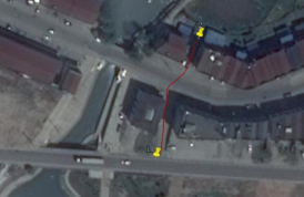 某管線(xiàn)鋼管直徑為D610mm,直管段全部采用L415螺旋縫埋弧焊鋼管,設計壓力為6.3 MPa。在施工圖設計階段,該評價(jià)段管道所處地區等級為二級地區,鋼管設計壁厚為9.5 mm。評價(jià)段管道全部采用溝埋敷設,根據施工圖信息,評價(jià)段管道管頂平均埋深為1.5 m。目前,評價(jià)段管道兩側5米間距處均建有兩排多層民房(見(jiàn)圖6),人口密度與施工建設活動(dòng)增多,導致管段所處區域的地區等級升級至三級地區。