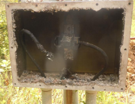 圖2 恒電位儀被燒毀 圖3 等電位連接器被燒毀