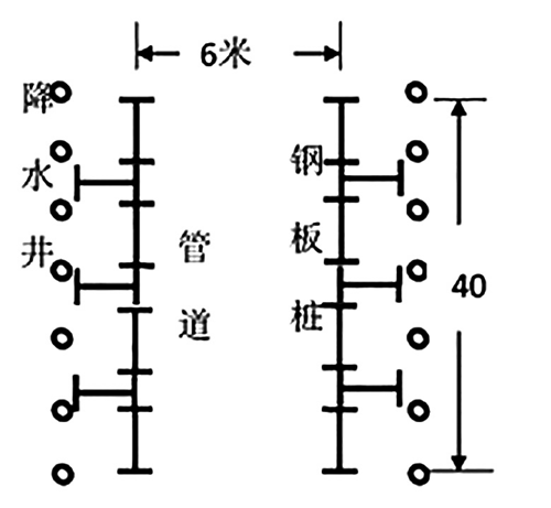 為了保證管道腐蝕缺陷點(diǎn)修復作業(yè)坑開(kāi)挖成功,先在作業(yè)坑四周設置圍堰,然后在作業(yè)坑兩側設置鋼板樁固土措施,同時(shí)采取井點(diǎn)降水措施,使作業(yè)坑內的水位降至輸油管道2米以下,然后再開(kāi)挖修復作業(yè)坑。