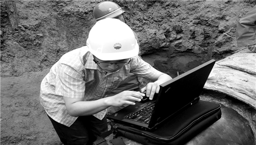因為潮白河穿越段上的管道缺陷腐蝕點(diǎn)在河道中,為了消除數據偏差精確定位,先在河堤外開(kāi)挖一個(gè)管道探坑(圖5),根據內檢測數據,確認管道環(huán)焊縫的相對位置。