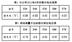 針對西二線(xiàn)、西三線(xiàn)該段管線(xiàn)陰保電位值常年偏正,所測電位值不穩定且存在波動(dòng)的問(wèn)題,分公司于2014年5月~6月委托公司內部單位進(jìn)行了現場(chǎng)專(zhuān)項調查檢測,形成了如下結論: