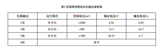 (1)第2路區域陰極保護系統恒電位儀開(kāi)啟后,干線(xiàn)陰極保護系統恒電位儀輸出電壓電流為零,說(shuō)明第2路區域陰極保護系統對線(xiàn)路陰極保護系統存在陽(yáng)極干擾;