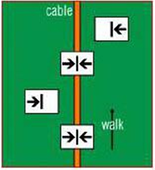 ( 5)連續擺動(dòng)接收機并延光纜方向前進(jìn),跟蹤光纜的走向,邊走邊擺動(dòng)接收機,保證光纜就在腳下。