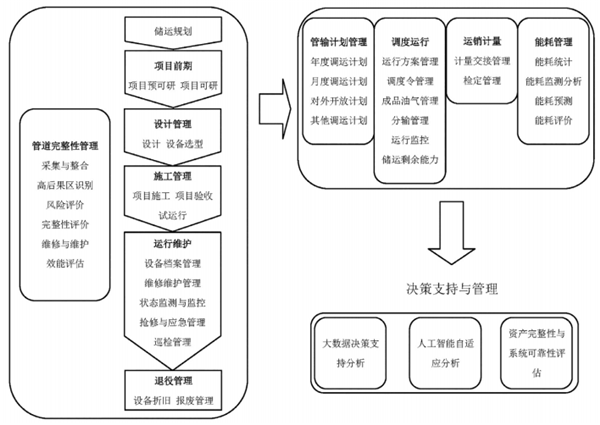 其中,管道全生命周期管理是最基本的功能模塊和業(yè)務(wù)內容,以管道完整性管理貫徹始終,實(shí)現管道安全運行和管理全過(guò)程。