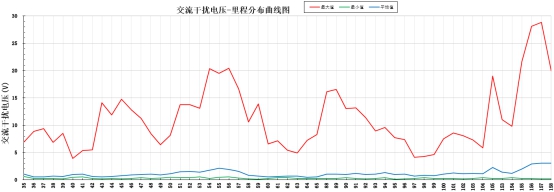 圖2 交流干擾電壓-里程分布曲線(xiàn)