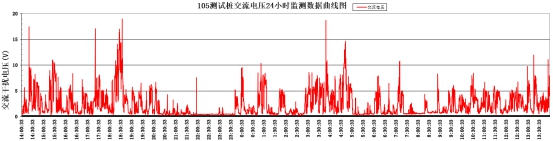 圖5 105測試點(diǎn)24 h交流干擾曲線(xiàn)圖