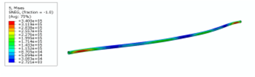 對管道距離橋墩最近的部位施加振動(dòng)加速度的約束,本模型中對應管道的中心部位。在振動(dòng)加速度驅動(dòng)下求解應力場(chǎng)和應變場(chǎng)的結果。