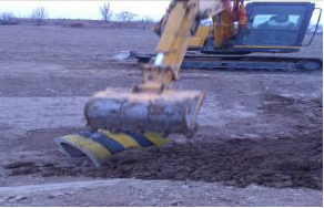為驗證兩種鋼筋砼板的效果,選取了能承受最大彎矩較小的鋼筋砼U型板進(jìn)行了試驗,見(jiàn)圖8。試驗選取160KN的反鏟式挖掘機對鋼筋砼U型板進(jìn)行強力挖掘破壞,試驗構件未發(fā)生破損,證明能滿(mǎn)足防護使用要求。