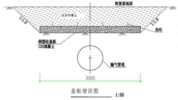 對于埋深較淺的個(gè)別地段,在管道(光纜)上方覆蓋15 cm厚3 m寬鋼筋混凝土蓋板(見(jiàn)圖7),增加物理隔離保護措施,避免機械旋耕作業(yè)損傷光纜。
