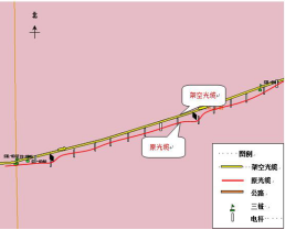 陜京二線(xiàn)光纜經(jīng)過(guò)2006年、2007年5次斷纜事件后,在中繼段光纜測試過(guò)程中發(fā)現部分地段平均損耗值達到了0.2 9dB/km(高于標準指標0.26 dB/km),光纜性質(zhì)指標不達標。根據測試數據,結合現場(chǎng)開(kāi)挖及排查情況分析,該段光纜埋設較淺,麻山藥旋耕種植時(shí)極易損傷光纜,F場(chǎng)調查發(fā)現重新埋地敷設光纜,需人工開(kāi)挖纜溝且地協(xié)難度大、費用高,最終采取架空方式重新敷設一條長(cháng)度為3 km GYTA53-24B4光纜,每隔50 m架設1根12 m高水泥電線(xiàn)桿,在兩端光纜割接處開(kāi)挖接續作業(yè)坑,將架設新光纜接續至原光纜上,廢除損耗值不達標段光纜(見(jiàn)圖5、6)。