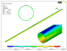 利用ANSYS有限元軟件建立管土模型,模擬一顆生長(cháng)20年的成年香樟樹(shù),樹(shù)干高度可達20 m左右,整株樹(shù)重量約為1 500 kg,管道在樹(shù)下埋深1.5 m左右,計算出的管道上部與土壤接觸部位的內表面等效應力值最大,為182 MPa,小于鋼材屈服強度448 MPa,因此管道不會(huì )發(fā)生失效破壞(見(jiàn)圖 2)。