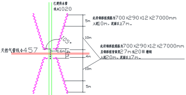 (2)已建管道支護流程(以鋼板樁圍堰支護為例)