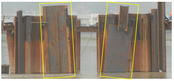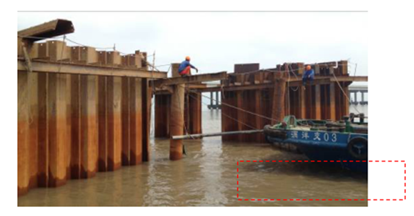 通過(guò)分析對比,選擇鋼板樁圍堰支護措施與已建管道無(wú)接觸,施工過(guò)程基本無(wú)水下作業(yè),鋼板樁可重復利用,技術(shù)成熟、風(fēng)險較小。