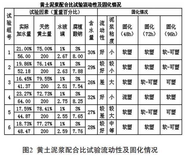 根據黃土的特性, 黃土泥漿是采用試驗場(chǎng)地附近的天然黃土、 水和適量的外加劑拌和而成的流體。 所需的外加劑選用腐植酸鈉和水玻璃。 腐植酸鈉(HA-NA) 極易溶于水, 在漿體中用作降粘、 降濾試劑, 可增加漿體的流動(dòng)性; 水玻璃作為外加劑時(shí)可提高材料的強度, 提高漿體硬化速度。 黃土泥漿呈流塑——軟塑態(tài), 不會(huì )對管道造成損害。 黃土泥漿凝固后具有較好的強度, 管道將處于均質(zhì)柔性環(huán)境中, 近似于原黃土, 可有效達到穩固管道防止其擺動(dòng)的目的。