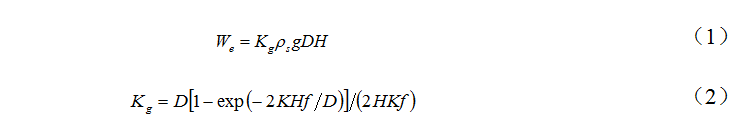式中,We 為單位長(cháng)度管頂土壓力;Kg 為管頂豎向土壓力集中系數;K為水平土壓力系數;f 為管土摩擦因數;ρs 為圍土密度;D為管道外徑;H為管頂回填土厚度。