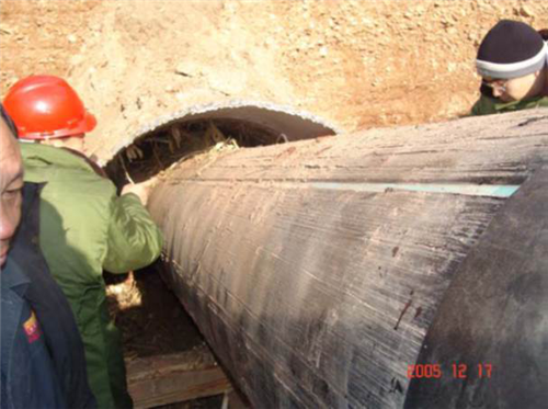 在西氣東輸三線(xiàn)工程等定向鉆穿越工程中采用改性環(huán)氧玻璃鋼防護層,取得了良好的效果,見(jiàn)圖14。