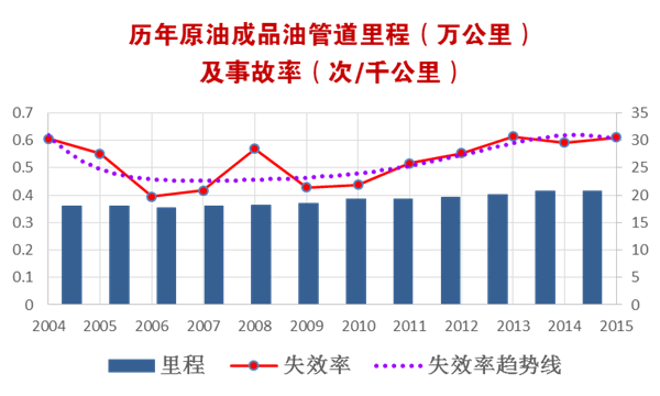 圖1 美國油品管道里程及失效率