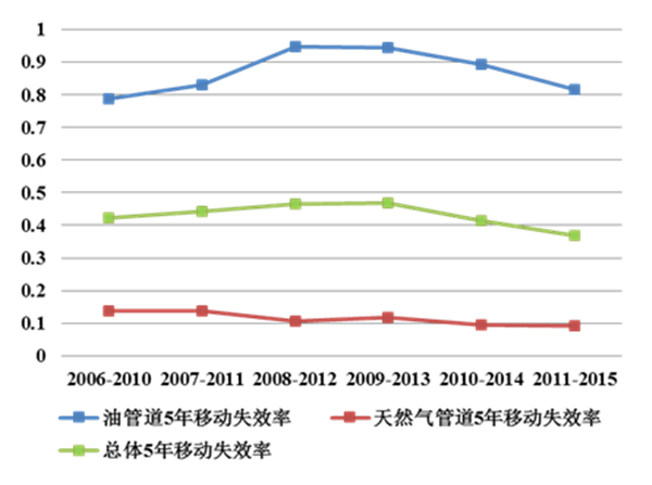 2006—2015年,管道總體失效率穩中有降。