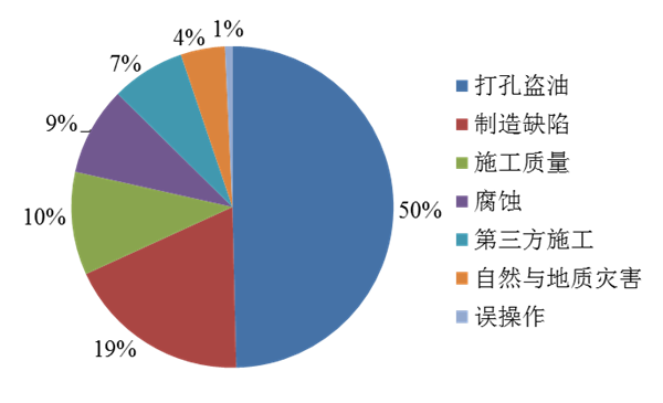 (1)受經(jīng)濟發(fā)展現狀制約,打孔盜油成為我國管道失效的最主要因素,而國外卻較少發(fā)生。隨著(zhù)相關(guān)立法和宣傳的不斷加強,這一失效因素的比例將不斷降低。