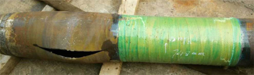美國杜邦公司研制出的新型復合材料“凱夫拉”(如圖3所示),是一種有機芳綸復合材料,密度低、強度高、韌性好、耐高溫、易于加工和成型?捎糜诤g、裂紋、機械損傷、焊縫缺陷、幾何缺陷和材質(zhì)缺陷管道的修復補強。無(wú)論是單點(diǎn)缺陷補強,還是整體管段缺陷補強,均可采用。 除此之外,還可用于對無(wú)缺陷管道的提壓增強,例如在自然條件改變導致管道安全系數需要增加和管道運行壓力需要提高等情況下,都可以用這種材料進(jìn)行增強處理,其適用溫度為-30℃~250℃,可適用于常溫、高溫、內腐蝕、外腐蝕、陸上、水下、直管、彎管、三通等環(huán)境中80MPa以下壓力。