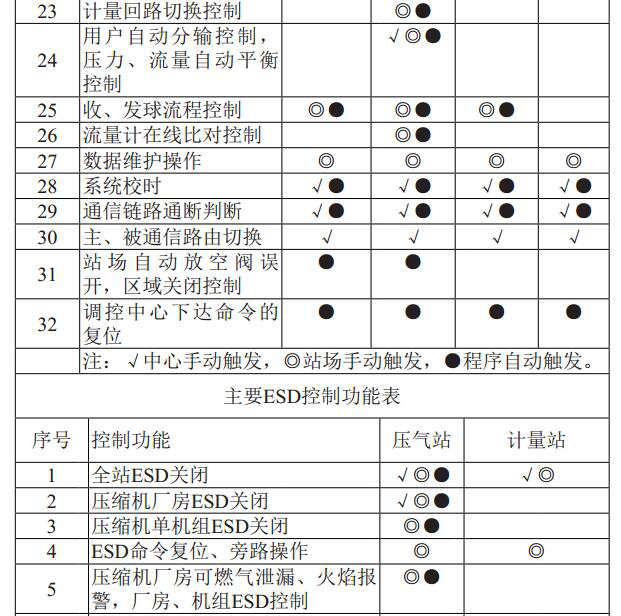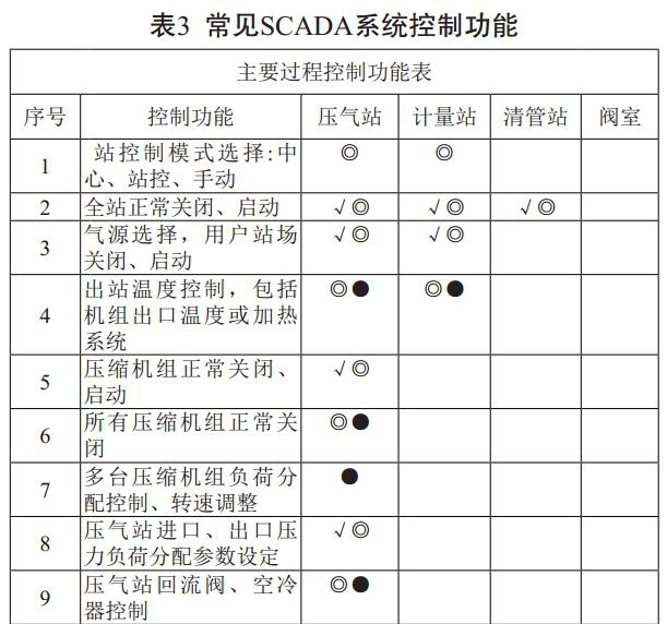 對比分析發(fā)現,基于站場(chǎng)自動(dòng)邏輯控制的遠程控制是建立在站場(chǎng)安全運行的前提下,在站場(chǎng)自動(dòng)控制的基礎上,實(shí)現調控中心遠程宏觀(guān)操作控制。通過(guò)優(yōu)化SCADA系統遠程自動(dòng)控制功能,可有效提高遠程監控管理的有效性和可靠性,降低人為原因產(chǎn)生的不確定性或不安全因素,提高管道的運行效率和可靠性,進(jìn)而降低管線(xiàn)的運行成本。通過(guò)總結長(cháng)期以來(lái)的經(jīng)驗,我們得出典型SCADA系統控制功能(見(jiàn)表3)。