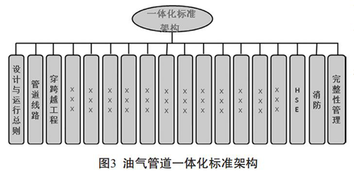 企業(yè)的一體化標準體系架構應在全面系統梳理國內標準、借鑒吸收國外最先進(jìn)的理念和做法、充分考慮最優(yōu)化的實(shí)踐方案基礎上建立。一體化架構確認的標準將是企業(yè)最先進(jìn)及最核心的技術(shù),是企業(yè)核心競爭力的體現。借鑒國外石油企業(yè)標準體系構架建設理念,應按照管道生命周期進(jìn)行劃分,使企業(yè)標準覆蓋設計、施工、營(yíng)運和維護等所有環(huán)節。