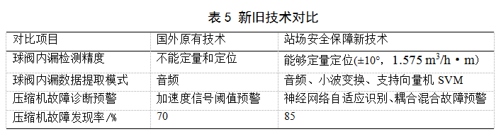 基于支持向量機(SVM)模型、聲發(fā)射理論以及現代傳感及信號處理技術(shù)開(kāi)發(fā)了雙通道天然氣管道球閥內漏檢測裝置及方法,最小可檢測內漏流量達到1.575 m3/h·m;提出了壓縮機組組合式神經(jīng)網(wǎng)絡(luò )自適應故障診斷方法和混合故障預警模型,壓縮機組故障發(fā)現率提高15%以上(表5)。建立了壓縮機振動(dòng)監測與診斷管理平臺,實(shí)時(shí)監測壓縮機組運行。