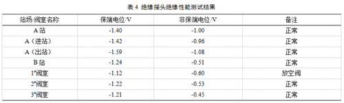 采用電位法測量絕緣接頭絕緣性能,結果(表4)顯示,各絕緣接頭性能正常。