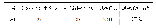 改線(xiàn)管段穿越河流,管道周邊建(構)筑物、人員密度等因素較少,將其劃分為1個(gè)評價(jià)單元,即1處管段(段號GD-1)。