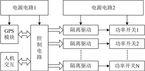 基于負載切換方案的管道極化電位測試方法,主要在原測試儀器的基礎上改進(jìn)研發(fā)新型GPS電流通斷器,依靠?jì)炔控撦d實(shí)現電流的通斷以及保證恒電位儀正常工作。其系統組成主要包括控制器電路、GPS模塊、驅動(dòng)電路、功率電子開(kāi)關(guān)、隔離電源電路及人機交互等電路構成(圖 1)。